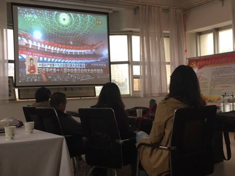 2017年10月18日上午9点,应用技术学院党委在学院会议室组织学院全体党员干部收听收看十九大开幕式,聆听了习近平总书记代表十八届中央委员会所做的报告。